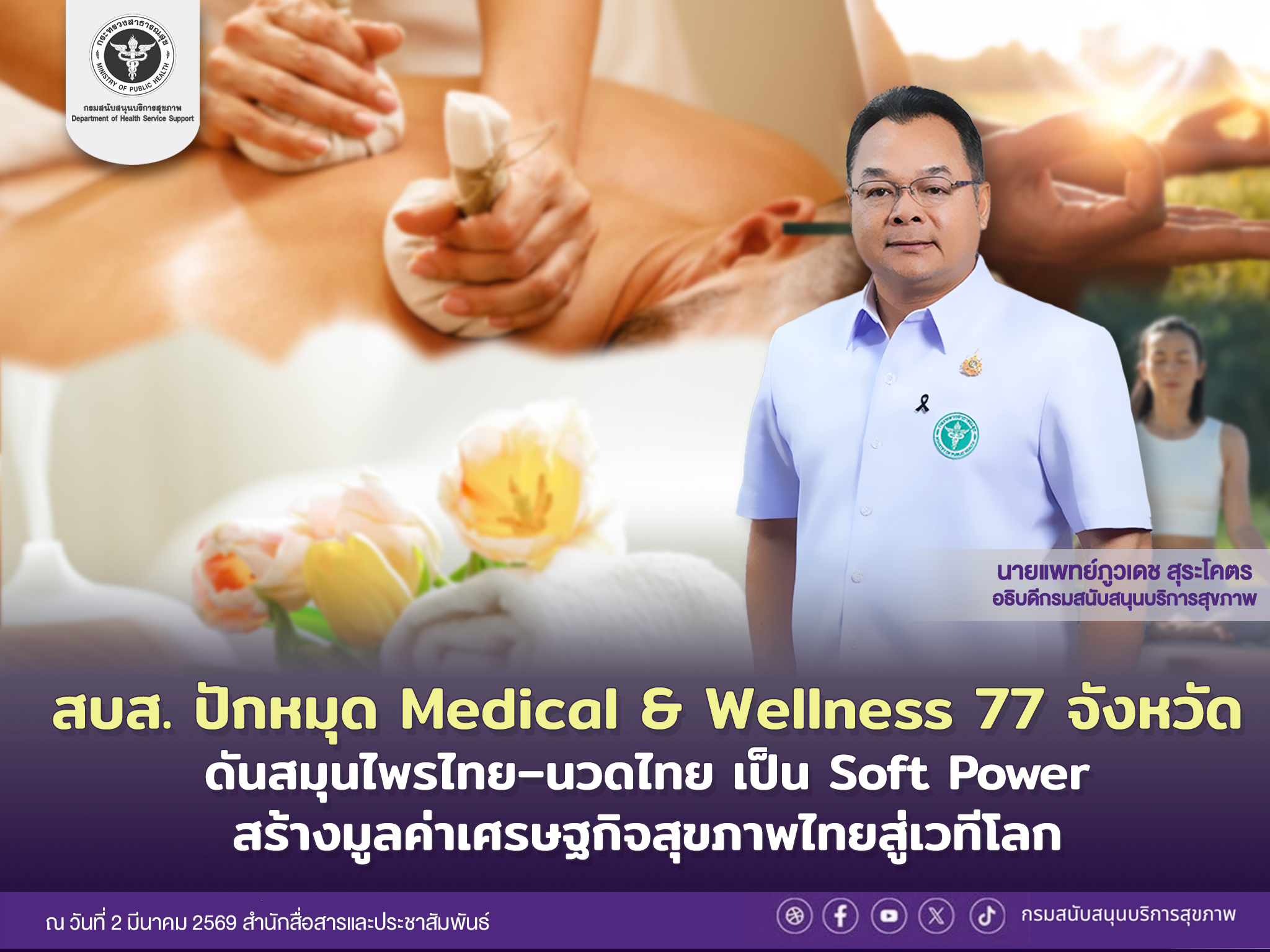 สบส. ปักหมุด Medical and Wellness 77 จังหวัด ดันสมุนไพรไทย–นวดไทย เป็น Soft Power สร้างมูลค่าเศรษฐกิจสุขภาพไทยสู่เวทีโลก